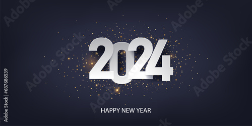 vector, illustration, background, happy new year, calendar, season, 2024, number, celebration, congratulation, greeting, card, international, holiday, gold, confetti, white, festive, event, party, dot, shiny, date, blue, winter