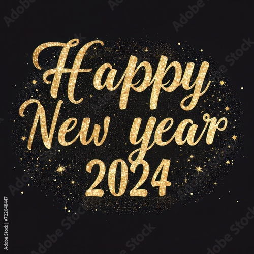 Happy New Year 2024. Year 2024 photo in golden sparkling photo