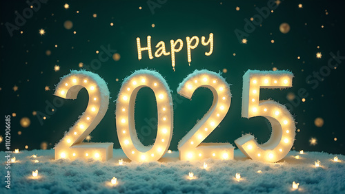2025, new year, happy new year, celebration, holiday, winter, snow, light, festive, decoration, background, design, greeting, card, party, event, christmas, year, season, sparkle, bright, white, teal, dark, night, magic, joy, fun, future, hope, wishes, goal, resolution, countdown, calendar, jan, december, illuminated, number, typography, text, message, snowy, cold, cosy, warm, romantic, magical