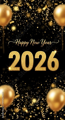 new year, 2026, celebration, party, festive, holiday, event, countdown, fireworks, confetti, glistering, sparkle, gold, gold, black, background, balloon, happy, joy, excitement, cheer, toast, welcome, future, year, eve, midnight, celebrate, occasion, greeting, wishes, congratulation, anniversary, special