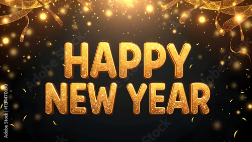 happy, new, year, celebration, holiday, gold, text, confetti, greeting, card, party, festive, sparkle, glistering, shiny, glowing, background, black, gold, decoration, event, fireworks, typography, design, graphic, illustration, vector, banner, poster, wish, season, winter, december, jan, eve, night, midnight, countdown, resolution, hope, joy, happiness, success, prosperity, future, time