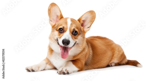 happy Puppy Welsh Corgi 14 Weeks old dog winking panting and sitting isolated on white : Generative AI