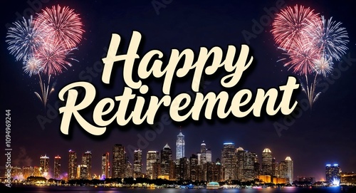 happy retirement lettering design on night sky with fireworks background new year party concept
