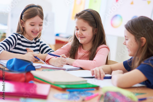 happy, schoolgirl, working, class, three, happiness, fun, laughing, smiling, learning, education, people, communication, children, girl, group, schoolgirl, cooperation, school, pupil, elementary, student, work, lesson, sitting, optimistic, desk, pen, teamwork, exercise, book, classmate, wise, primary, booklet, team, task, intelligence, community, cognition, clever, writing, lesson, talking, preteen, caucasian, confidence, paper, casual attire
