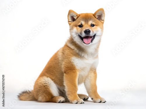 shiba inu, puppy, dog, animal, pet, cute, sitting, white background, studio shot, canino, domestic, mammal, young, adorable, happy, playful, friendly, purebred, fluffy, alert, panting