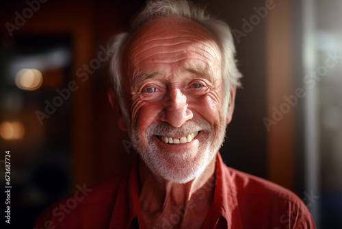Happy smiling elderly man. Old person. AI.