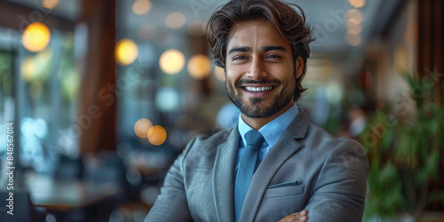 happy, smiling, indian, business, man, leader, look, ahead, professional, modern, confident, charismatic, friendly, positive, engaging, photogenic, stylish, indoor, workspace, background, warm, lighting, relaxed, casual attire, successful, charming, approachable, personality, hair, beard, eye, expressive, joyful, welcoming, natural, bright