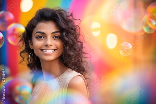 happy, indian, woman, colourful, background, rainbow, soap, balloon, gradient, joyful, vibrant, atmosphere, many-coloured, delightful, female, lively, playful, bubble, hue, ecstasy, content, airy, happiness, colorfulness, blowing, blissful, delight, contentment, jovial, delicate, smile, serene, euphoria, carefree, elated, pleased, celebratory, emotion, glowing, joyous, felicity, serenity, radiant, grinning, cheering, celebrate, inspiring