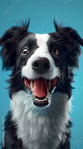 collie, canino, dog, happy, blue, smile, portrait, closeup, cute, black-and-white, animal, advertising, product, commercial, photo, e-business, publicity, marketing, promotion, simple, abstract, poster, art, decoration, copy space, background, illustration, theme