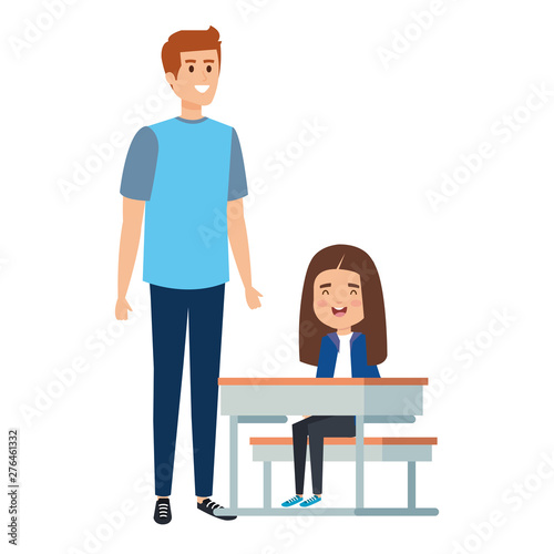 happy student girl in schooldesk with male teacher