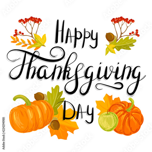 thanksgiving, happy, background, day, autumn, pumpkin, holiday, design, fall, celebration, lettering, leaf, season, drawn, text, poster, maple, quote, decoration, card, white, orange, calligraphy, banner, harvest, leaf, vegetable