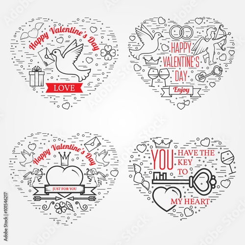 Happy Valentine's Day greetings card, labels, badges, symbols, i
