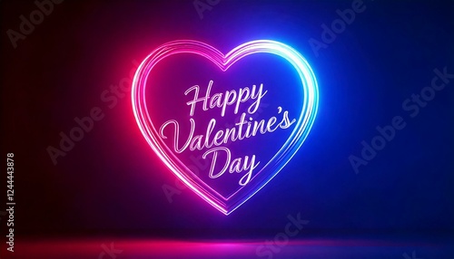 Happy valentine's day handwriting message in a pink fuchsia neon heart on a black background valentines' valentine text card celebration handwritten text digital illustration