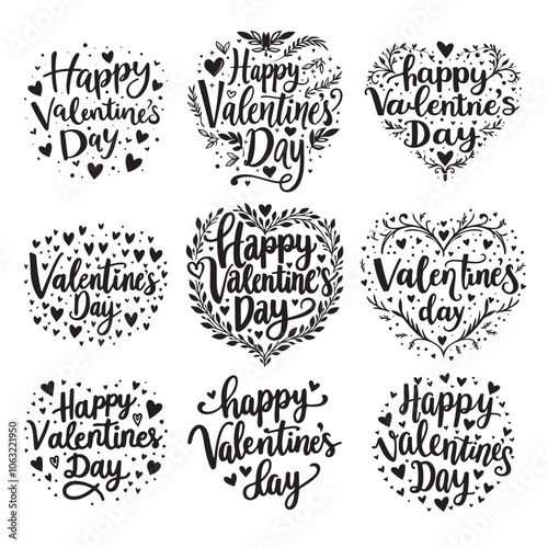 Happy Valentines Day lettering set. Hand drawn calligraphy collection. Vector illustration.