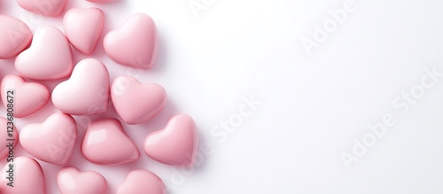 Happy Valentine's Day Pile of pink heart shaped candies. Copy space