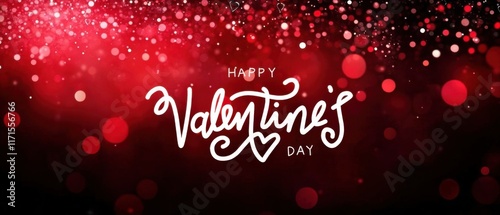 Happy Valentines Day Red Bokeh Background with Romantic Lettering