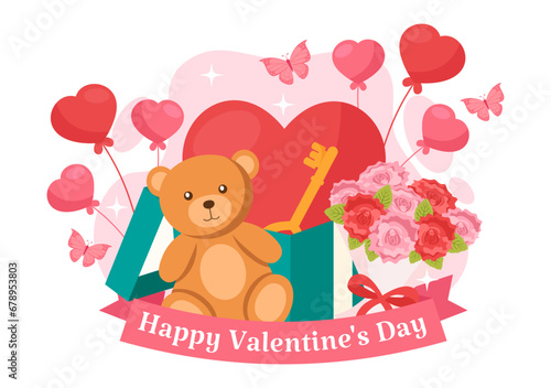 Happy Valentine's Day Vector Illustration on February 14 with Heart or Love for Couple Affection in Flat Valentine Holiday Cartoon Pink Background