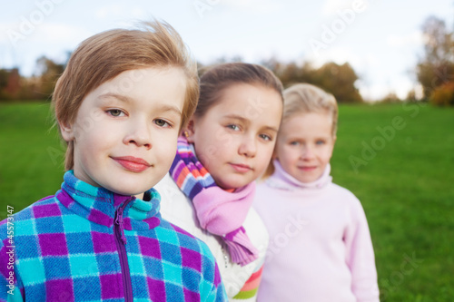 boy, caucasian, children, childhood, cute, field, friends, fun, girl, grass, green, group, happiness, happy, joy, children, lifestyle, male, meadow, nature, outside, park, people, person, play, smile, sunny, together, young, youth, three, autumn, blond, excited, surprised, line, friendship, perspective, windy, foulard, jacket