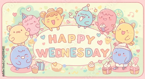 Happy Wednesday Illustration with Cute Cartoon Characters and Festive Elements