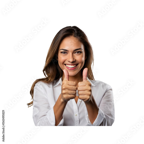 woman, female, thumb up, approval, agreements, positive, happy, smiling, success, excellent, great, honed, ok, good job, satisfied, confident, cheerful, optimistic, businesswoman, professional, businesswoman, corporate, employee, men at work, portrait, studio shot, isolated, white background, closeup, gesture, hand gesture, body language, expression, emotion