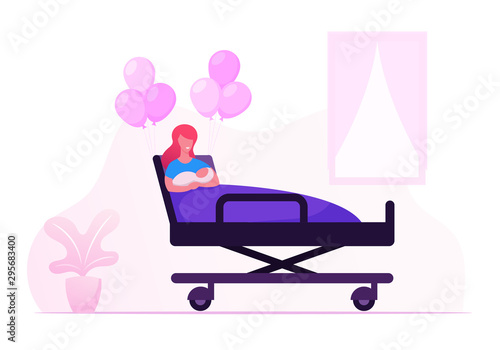 happy, woman, holding, newborn, baby, hand, chamber, maternity, hospital, delivery, childbirth, clinic, room, mother, new, born, children, lying, bed, balloon, bunch, cartoon, flat, vector, illustration, girl, people, human, character, person, healthy, daughter, bonding, female, children, family, breastfeed, infant, health, delicate, motherhood, together, boy, first, affectionate, milk, care, feeding, eat, son