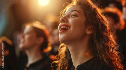people, music, spotlight, live, crowd, excitement, girl, beautiful, party, young, expression, fun, joy, female, looking, laughing, hair, event, woman, cheerful, festival, smile, portrait, red, performance, entertainment, nightlife