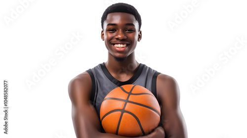 Happy young African American basketball player, isolated on white background