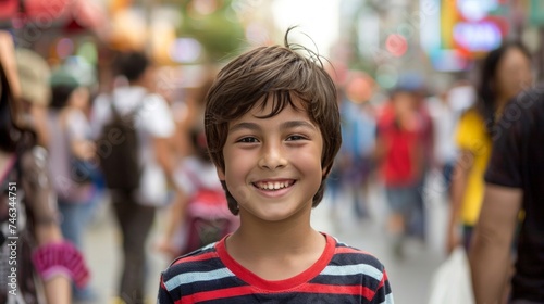children, smiling, city, street, urban, happiness, boy, carefree, casual attire, clothing, outdoors, people, background, cheerful, youth, life, pedestrian, area, vibrant, bustling, joy, modern, scene, lively, summer, day, innocence, contentment, striped, shirt, leisure, crowd, multicultural, diversity, public, place, sunny, enjoyment, relaxed, children, playful, city landscape, positive, emotion