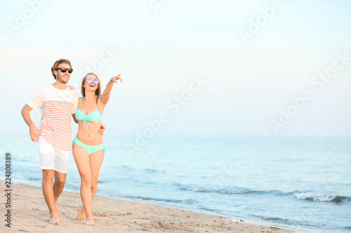 affection, background, beach, beachwear, beautiful, boyfriend, carefree, caucasian, coast, couple, date, female, fun, girlfriend, hand, happy, leisure, love, male, man, nature, outdoors, people, pointing, human relationships, relax, resort, rest, romantic, sand, sea, season, shore, suit, summer, swimming, together, vacation, walking, weekend, woman, young