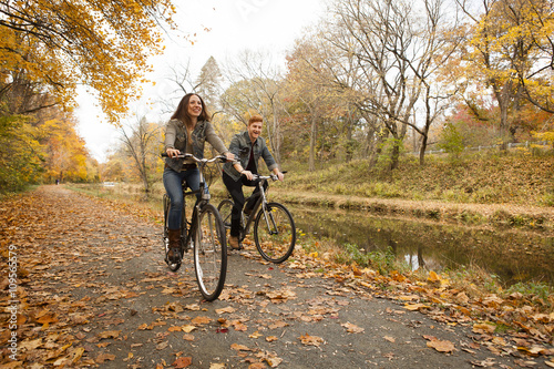 autumn, bicycle, cycling, fun, happiness, park, riverside, togetherness, couple, young men, missy, bonding, carefree, caucasian, bicyclist, day, energy, female, freedom, friendship, leisure, lifestyle, love, male, man, on the go, outdoors, river, rural