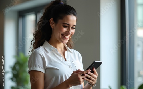 professional, woman, aged, e-business, eastern, person, indian, looking, men at work, using, latin, mobile phone, mobile, trade, hand, working, business, ai, standing, trading, entrepreneur, work, application, 1, cyberspace, young, smiling, text, happy, female, copy space, people, message, modern, hispanic, businesswoman, app, office, middle, call, formal, holding, phone, businessperson, reading