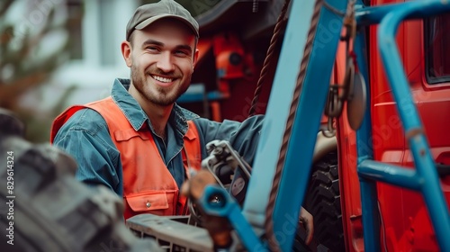 Happy Young Tow Truck Operator Excelling in His Chosen Career