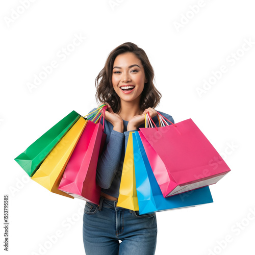 happy young woman with shopping bags on Isolated transparent background png. generated with AI