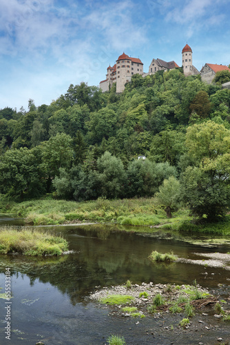 Harburg Castle and Woernitz River, Romantic Road, Harburg, Donau-Ries, Bavaria, Germany