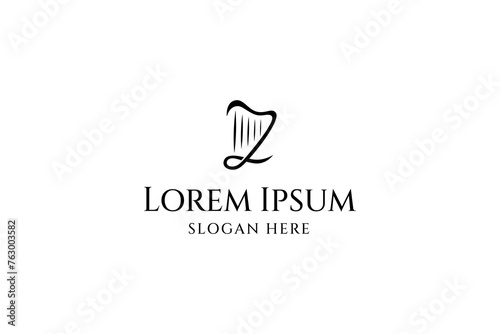 Harp musical instrument abstract logo design with in flat vector design style