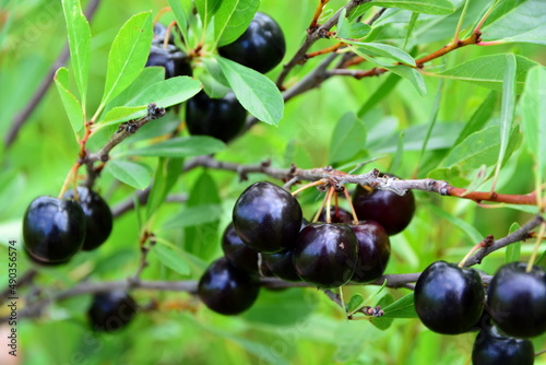 harvest berries of cherries close up on tree branches in the garden