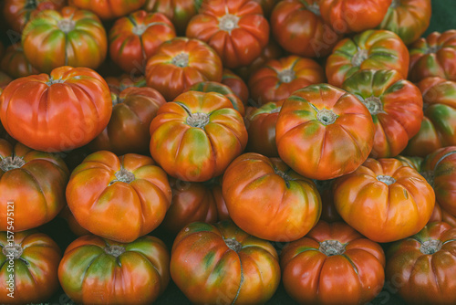 Harvest of big ripe red and green tomatoes