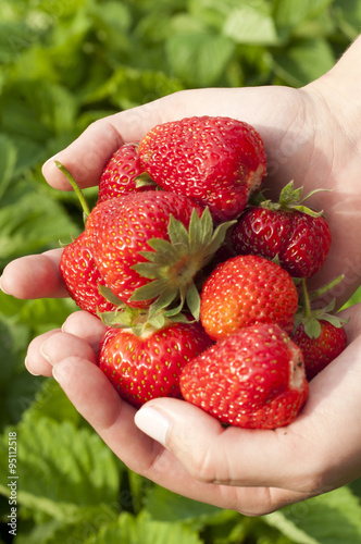 strawberry, hand, grass, berry, sweet, big, green, vitamin, joy, ripe, juicy, red, delicious, delight, crop, garden, gardener, growth, grow, natural, useful, biological, ecological, farm, fruit, hold, grip
