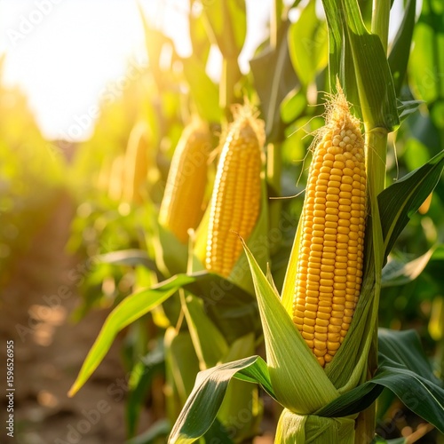 Harvest season at a golden cornfield during sunset showcasing ripe ears ready for picking and farming activity
