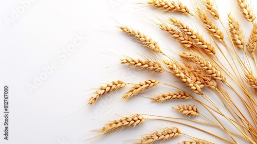 Harvest Season: Golden Wheat Ears on White Background, Top View, Isolated for Design Projects