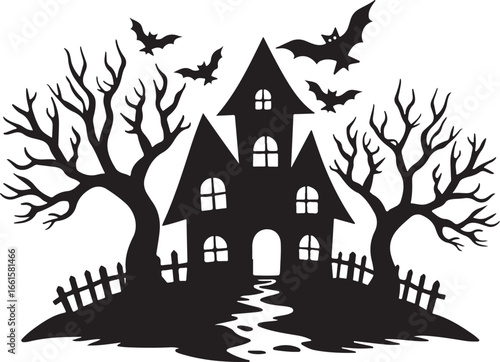 "Haunted House Halloween Silhouette"