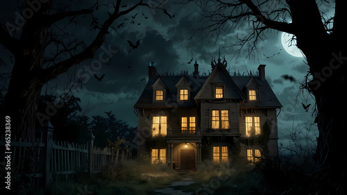 haunted, house, night, halloween, moon, dark, illustration, sky, home, tree, silhouette, black, architecture, old, town, skittish, village, scarey, cartoon, building, landscape, fantasy, fear, misty, moonlight, mystery, dramatic, darkness, bat, wood, nature, light, ghostly, creepy, eerie, glow, grunge, nightmare, story, ai, wallpaper, supernatural, urban, abandoned, concept, horror