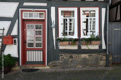 frame house, building, house, hesse, historic, door, window, entry, tuer