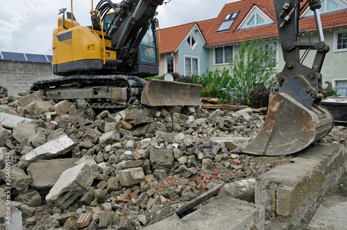 house, street, live, live, dilapidation, rubbish, power shovel, construction work