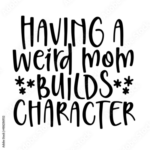 having a weird mom builds character inspirational quotes, motivational positive quotes, silhouette arts lettering design