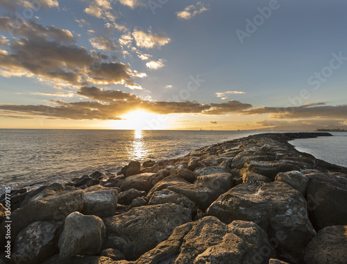 beach, sea, water, sunset, ocean, sunrise, nature, stone, beauty, summer, background, beautiful, sky, landscape, pink, sun, rock, horizon, calm, evening, dawn, twilight, orange, coast, blue, colours, yellow, light, wallpaper, colourful, outdoors, view, cloud, sunlight, hawaii, coastline, seascape, cloudscape, paradise, serene