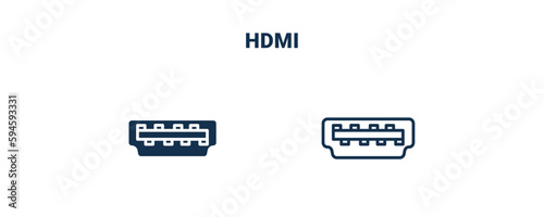 hdmi icon. Outline and filled hdmi icon from electronic device and stuff collection. Line and glyph vector isolated on white background. Editable hdmi symbol.
