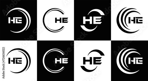 HE logo. H E design. White HE letter. HE, H E letter logo SET design. Initial letter EE linked circle uppercase monogram logo. H E letter logo SET vector design. HE letter logo design