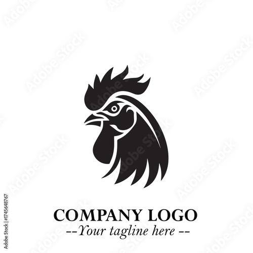 chicken, head, logotype, symbol, black, white, illustration, vector, design, animal, bird, rooster, hen, farm, agriculture, farm animal, poultry, minimal, modern, outline, silhouette, drawing, vignetting, abstract, graphic, emblem, branding, identity, contour, clean, simple, bold, minimalistic, traditional, countryside, rustic, organic, natural, beak, crest, feather, rural, vintage, mascot, artistic, creative, food, farming