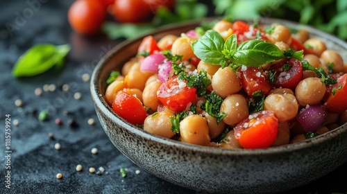 legume, health, nourishment, protein, fiber, vitamin, mineral, cooking, vegetarian, healthy, receipe, fresh, salad, chickpea, tomatoes, garnish, basil, meal, diet, ingredient, preparation, culinary, favor, wholesome, colourful, bowl, dish, nutrient, vibrant, lifestyle, organic, seasonal, local, appetising, simple, homemade, balanced, delicious, nourishing, vegetarian, low-calorie